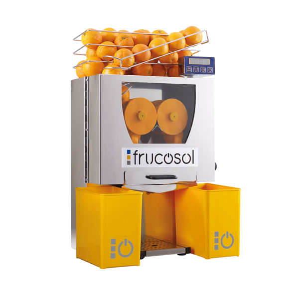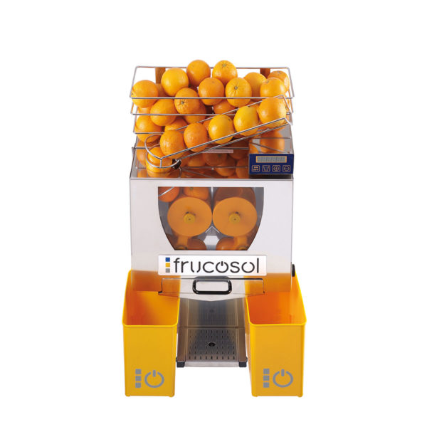 Modern design, attracting the attention of customers is a special advantage of this device. The presented orange squeezer is a compact solution ensuring versatility and high quality of functioning. Made of high-quality stainless steel, it has a digital fruit counter of the latest generation, so you can program the number of oranges to be squeezed at any time of use. The control of the squeeze pressure allows the maximum amount of juice from one orange to be reached. An additional advantage is the fruit basket placed on the top of the device, which allows you to place about 4 kg of product at the same time. The small size of the squeezer offers unlimited possibilities for the placement of the squeezer in small, medium and large catering establishments.